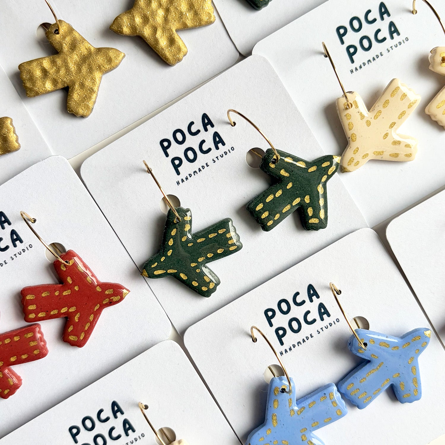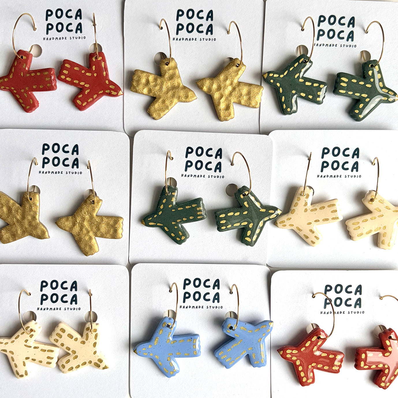 Soft colours and a calm Scandinavian feel come together in this lightweight design. Handmade in London and finished with comfortable gold-tone 304 stainless steel hoops, these earrings are easy to wear all year round. Available in five different colours.